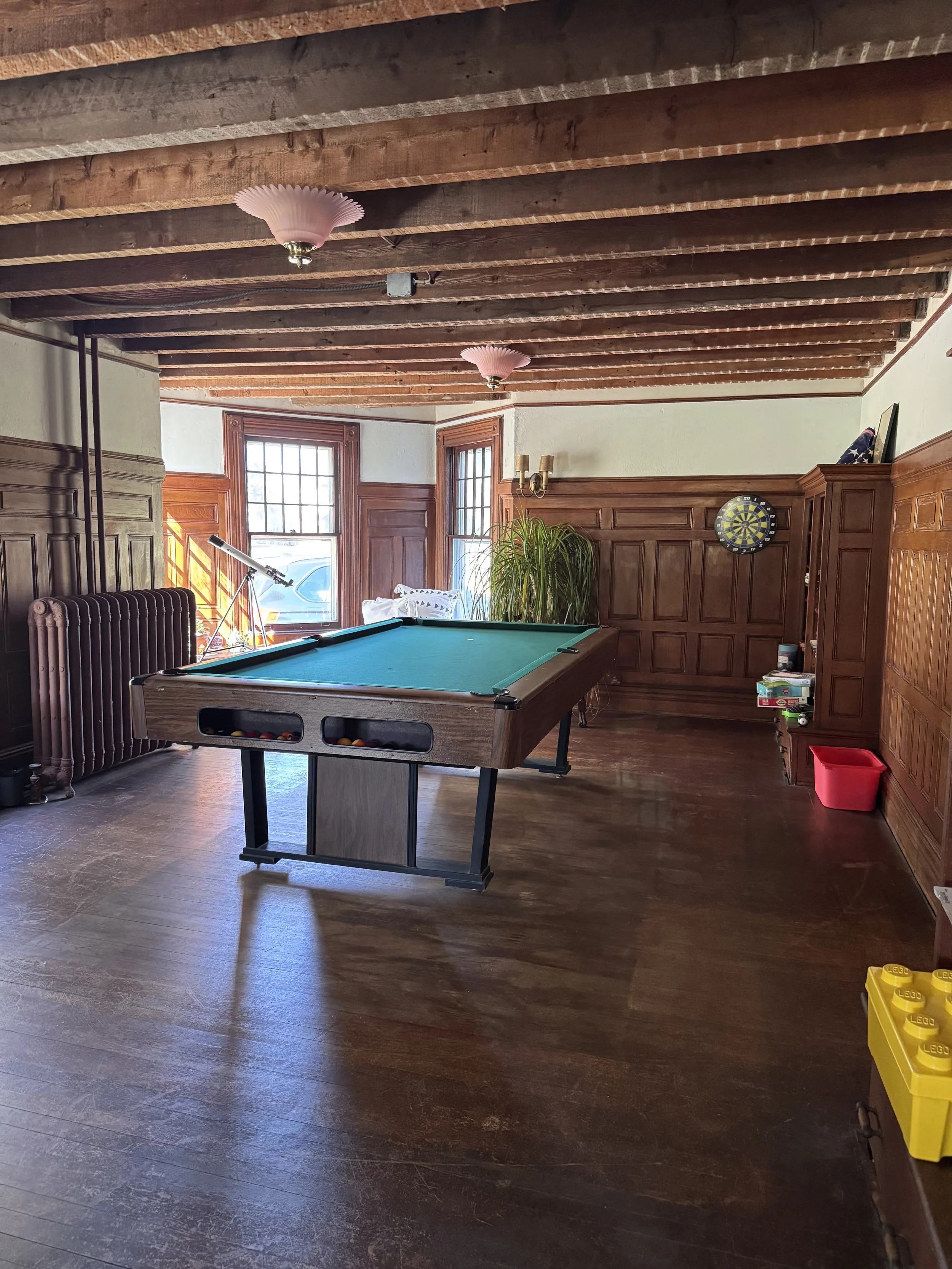 Sean found the pool table at a tag sale for $100 — the deal of the century until we learned what it costs to move, refelt, and relevel one. Still, it was worth it. Watching our cousins stay up until midnight, insisting on “just one more game,” was proof that the room’s purpose had been restored.